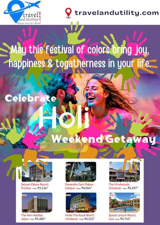 "Dive into India's most colorful festival! Our curated Holi tours for 3–5 day weekend getaways to spiritual or cultural hubs like Mathura, Vrindavan, and Rishikesh.offer... more than just a celebration; they are a journey where every splash tells a story of tradition, joy, and unforgettable memories.